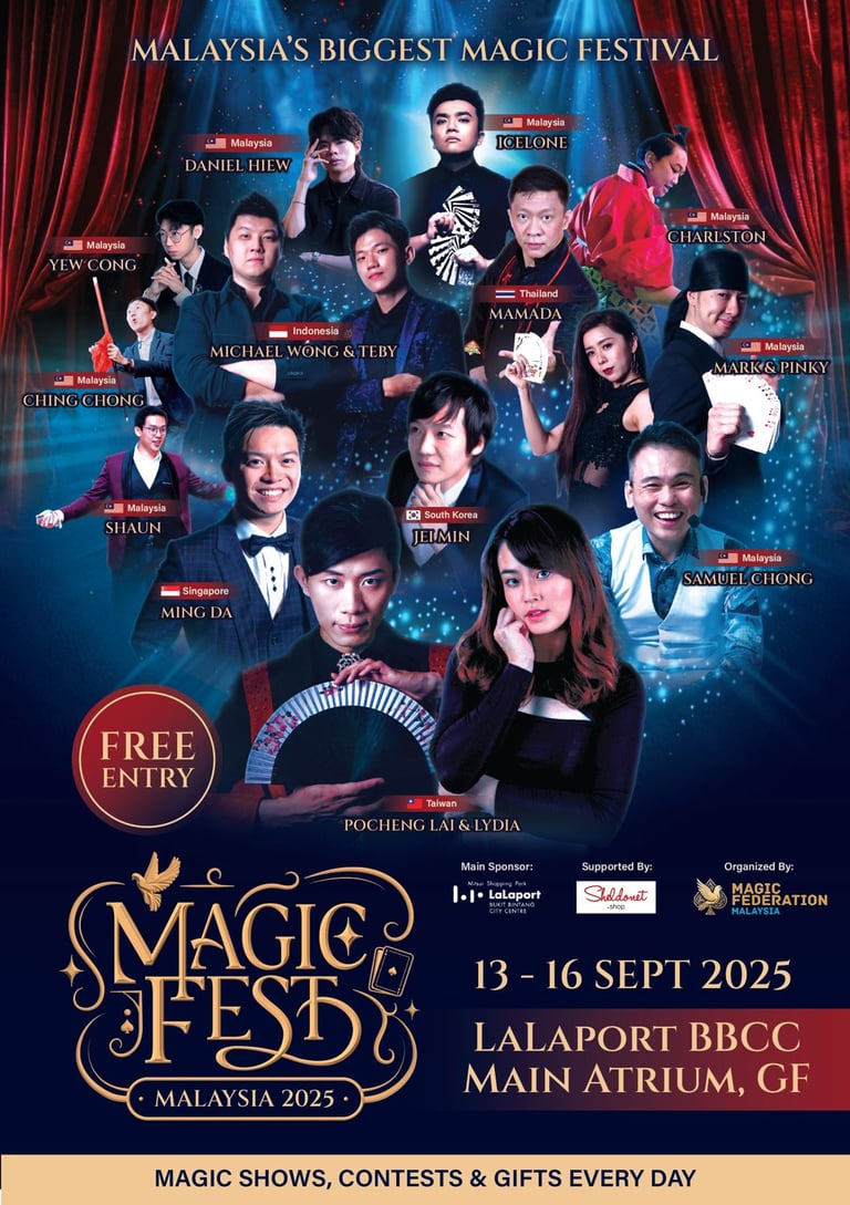 The best of the best, all in one place. We've brought Malaysia's magic legends together for an epic 4-day spectacle at MFM 2025. Witness jaw-dropping performances back-to-back.